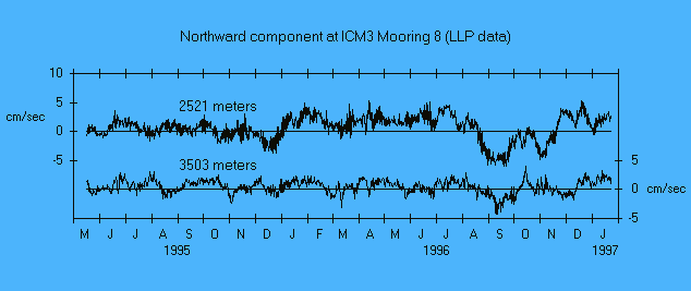 Scroll downward through this document to see the time series plots. All the plots on this page show filtered data from which the tides and all higher frequencies have been removed.