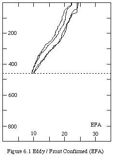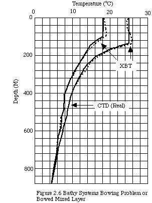 These procedures can also be applied to low to medium resolution, inflection point XBT data. However, the lower resolution makes it more difficult to identify the structures described here.