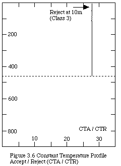 Since there are real oceanographic features and XBT malfunctions which may appear very similar to each other, a decision must be made about which QC flag to use. There are two general types of flag that can be applied: an accept flag and a reject flag. The accept flag is used in instances where you can be sure that the feature is real, or if a malfunction is thought to result in minimal impact on the quality of the data. If there is doubt about the feature, or the impact to the quality of the data is severe, then the reject flag is used. Inflection point data (including BATHY messages) must be quality controlled with a certain amount of caution as these data are of lower resolution. Many of the subtle features that are identified in this cookbook will not be encoded in the message, and therefore may be difficult to detect.