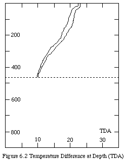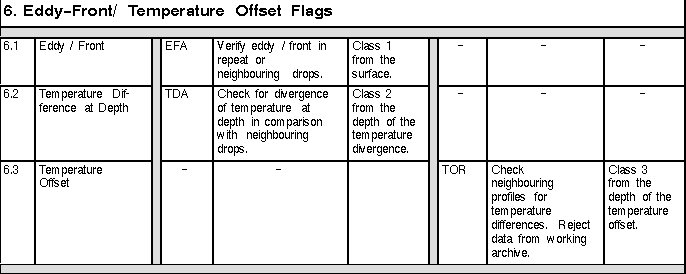 Use: The TDA flag is used if a temperature difference (>0.2°C) at depth is observed when compared to neighbouring profiles but this difference cannot be confirmed as real. Eddies or fronts are known to occur in the region, however, so the feature is considered to be probably real.