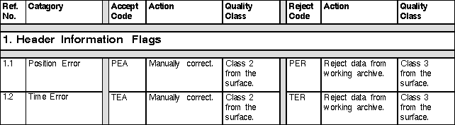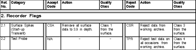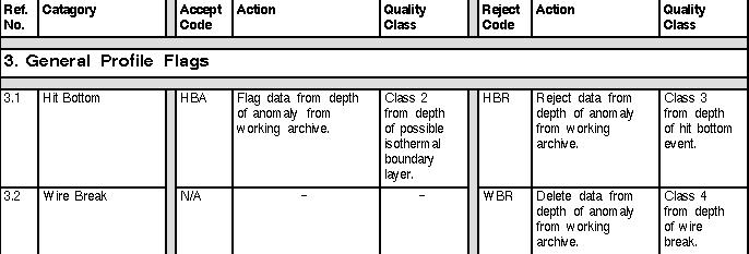 Appendix A. Table of integer codes used to identify the Quality Control Flags