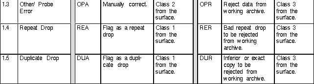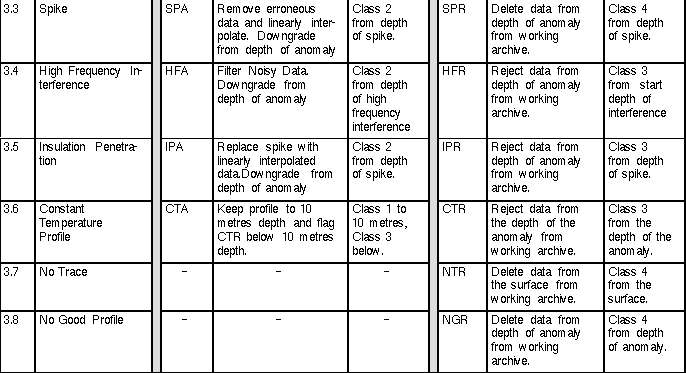 | Class 3 | "Probably" bad data | Class 3 data are suspect data in which unusual, and probably erroneous features are observed, Data are downgraded to Class 3 and rejected (may be retrieved) from the working archive from the depth of the anomalous (probably erroneous) features. |